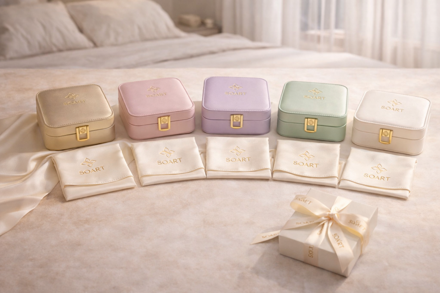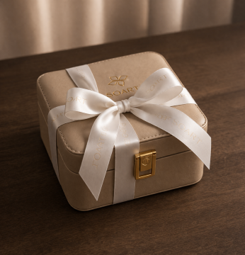 – Logo SOART gravé à la feuille d’or, signature raffinée.