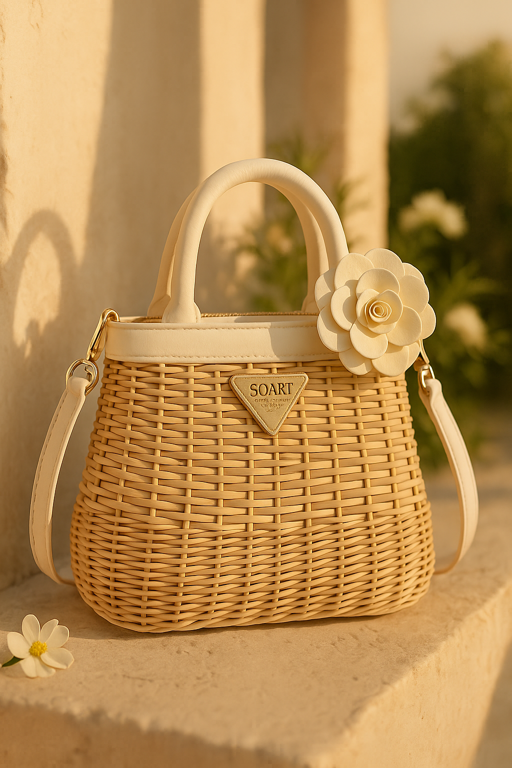Dotée d’une fermeture zippée sécurisée, de poignées souples et d’une bandoulière amovible en cuir, la SEVILLANA se prête aussi bien aux flâneries matinales qu’aux promenades crépusculaires. Une fleur sculptée à la main, d’une délicatesse infinie, parachève l’ensemble d’une touche poétique — une subtile note de romance portée par la brise estivale.